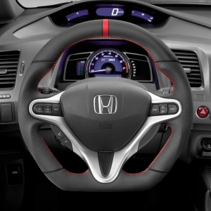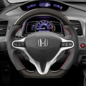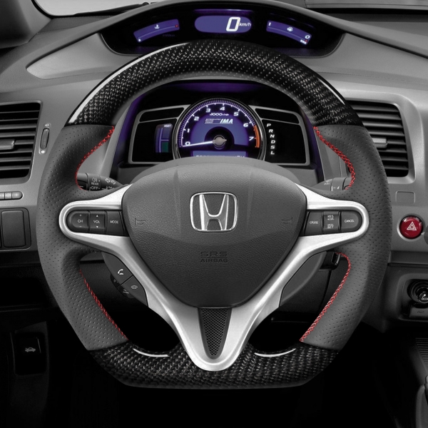 HONDA 專用【正碳纖維款】變形蟲方向盤 適用車款: Civic (2006-2011) MK8 FA,FG,FD,FN,FK ◆此為台灣生產製造保固,非中國淘寶品◆ ◆產品不含按鍵、氣囊、飾蓋,均是沿用原車◆ ◆照片及顯示中可能會有色差,牛皮顏色為黑色◆ ◆牛皮有皺褶為正常現象,我們使用100%真皮而非人造皮◆ ◆若您不確定您車款是否適用,請務必先訊息聊聊◆ 購買前須知 ☚ 我們產品均提供客製顏色服務,歡迎加LINE聊聊 ☚ 除了造型前衛、更具運動風、更有質感之外, 加大跑車凸點、整體加粗,握感更好! 左右人體工學握把設計,駕駛時更加舒適。 底部平把設計,美觀外也更增加膝部空間。 方向盤背面增加指扣,操控時更得心應手。