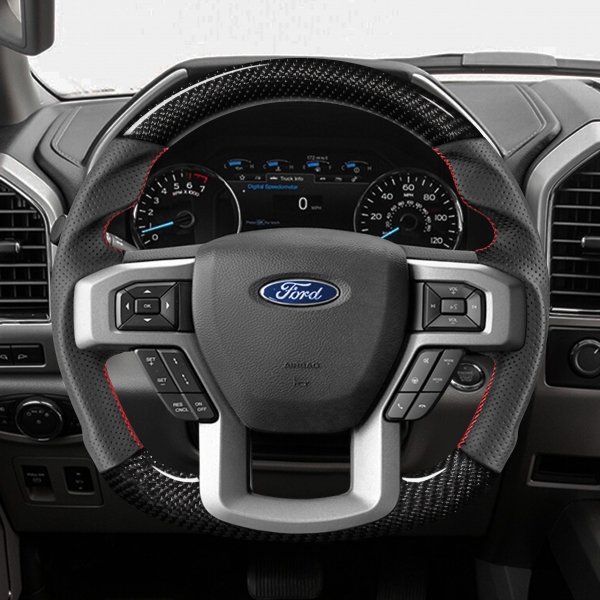 FORD 專用【正碳纖維款】變形蟲方向盤 適用車款: F-150 (2014-2020) MK13 P552 特別注意: 此造型方向盤不支援方向盤電熱功能, 如原車有電熱功能,電熱功能無法使用, 其餘功能均正常不影響。 ◆此為台灣生產製造保固,非中國淘寶品◆ ◆產品不含按鍵、氣囊、飾蓋,均是沿用原車◆ ◆照片及顯示中可能會有色差,牛皮顏色為黑色◆ ◆牛皮有皺褶為正常現象,我們使用100%真皮而非人造皮◆ ◆若您不確定您車款是否適用,請務必先訊息聊聊◆ 購買前須知 ☚ 我們產品均提供客製顏色服務,歡迎加LINE聊聊 ☚ 除了造型前衛、更具運動風、更有質感之外, 加大跑車凸點、整體加粗,握感更好! 左右人體工學握把設計,駕駛時更加舒適。 底部平把設計,美觀外也更增加膝部空間。 方向盤背面增加指扣,操控時更得心應手。