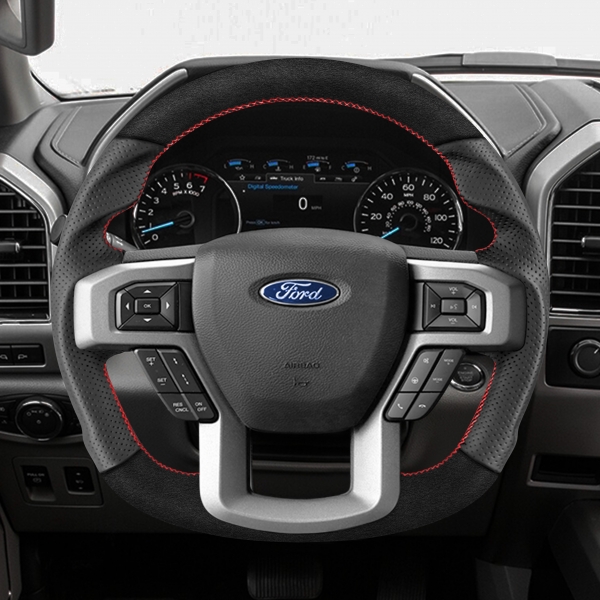 FORD 專用【上下麂皮左右牛皮款】變形蟲方向盤 適用車款: F-150 (2014-2020) MK13 P552 特別注意: 此造型方向盤不支援方向盤電熱功能, 如原車有電熱功能,電熱功能無法使用, 其餘功能均正常不影響。 ◆此為台灣生產製造保固,非中國淘寶品◆ ◆產品不含按鍵、氣囊、飾蓋,均是沿用原車◆ ◆照片及顯示中可能會有色差,牛皮顏色為黑色◆ ◆牛皮有皺褶為正常現象,我們使用100%真皮而非人造皮◆ ◆若您不確定您車款是否適用,請務必先訊息聊聊◆ 購買前須知 ☚ 我們產品均提供客製顏色服務,歡迎加LINE聊聊 ☚ 除了造型前衛、更具運動風、更有質感之外, 加大跑車凸點、整體加粗,握感更好! 左右人體工學握把設計,駕駛時更加舒適。 底部平把設計,美觀外也更增加膝部空間。 方向盤背面增加指扣,操控時更得心應手。